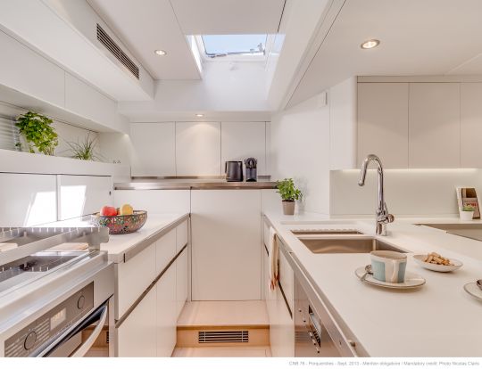 Le CNB 76 est un véritable yacht de luxe de 23 mètres de long dessiné par l'architecte naval Philippe Briand. Il le qualifie d'ailleurs "d'une longueur raisonnable et manœuvrable en équipage réduit." Ce navire de croisière hauturière est un vrai yacht de propriétaire à l'aménagement modulable, avec un quartier d'équipage dissocié, des cabines VIP luxueuses et un carré à la vision panoramique. À l'extérieur, le cockpit d'équipage est séparé des quartiers de vie et intègre deux postes de barre, équipés de sièges latéraux et d'une console électronique. Son autonomie en fait l'allié idéal pour partir à la découverte des océans du monde entier.