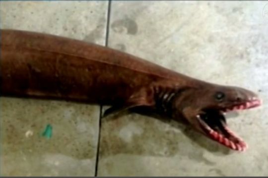 En Australie, en décembre dernier, David Guillot, skipper du chalutier Western Alliance, pêchait près de Lakes Entrance, au large de Melbourne, quand il a réalisé une prise à plus d'un kilomètre de profondeur… vraiment terrifiante. À la frontière entre une anguille et un requin cette créature préhistorique, aussi appelée "fossile vivant" est connue sous le nom de requin-lézard. D'après le pêcheur, l'animal mesurait environ 1,5 mètre et son corps ne ressemblait en rien à celui des autres requins. "Ça fait 30 ans que je pêche et je n'ai jamais vu de requin comme ça. Sa tête faisait penser à une chose sortie d'un film d'horreur. C'était assez horrible à regarder" a-t-il confié au Sydney Morning Herald.