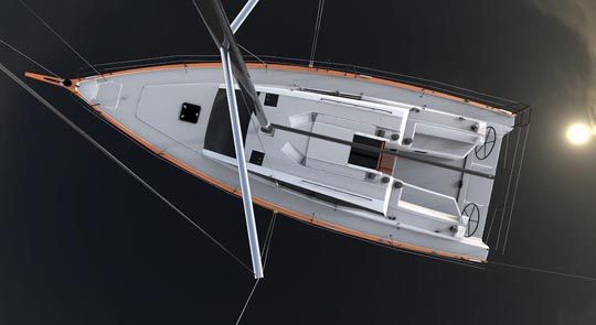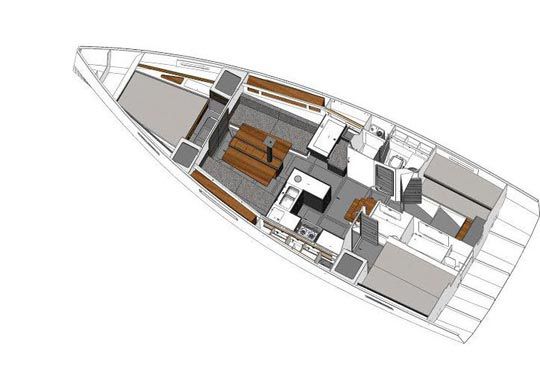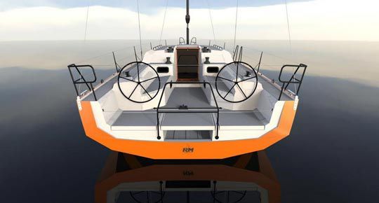 C'est d'ailleurs sur ses appendices que se distingue ce bateau puisqu'il sera proposé comme le 10.70, avec trois types de quilles. Le biquille, marque de fabrique des RM, limite le tirant d'eau sans trop pénaliser les performances et autorise l'échouage. La quille longue pour les amateurs de performances avec ses deux safrans. Et grande nouveauté : la quille relevable. Quille relevée, le tirant d'eau se limite à 1,30 m, une obligation pour accéder dans certains ports ou mouillages.