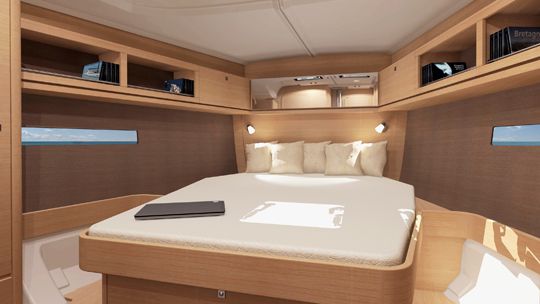 Après le 455, voilà le Dufour 460. Un nouveau voilier encore dessiné par le cabinet Felci qui montre le dynamisme du chantier rochelais. Car lancer un nouveau bateau n'est pas un projet sans conséquence et il faut compter 1,5 an de maturation avant de voir le voilier passer de projet à une présentation au public.