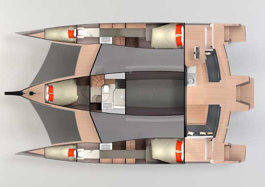 Pour le marché du charter et de la location, le Neel 45 pêchait par son aménagement. Le petit poucet de la gamme proposait seulement trois cabines doubles là où un catamaran de taille comparable en propose quatre. Le nouveau modèle de 51 pieds offre désormais la cabine manquante qui le remet dans la course aux sociétés de location. Les cabines en pointe de flotteur offrent également un espace pour les équipages.