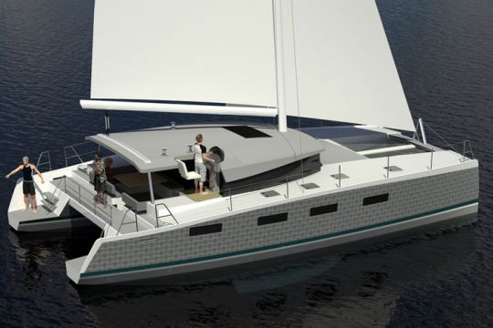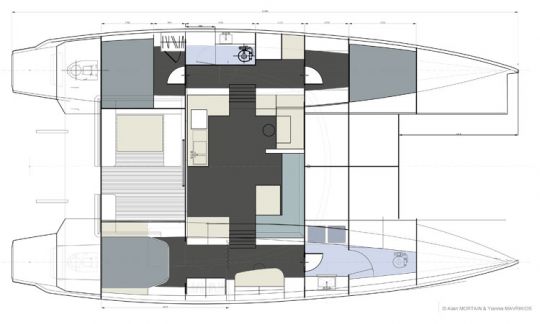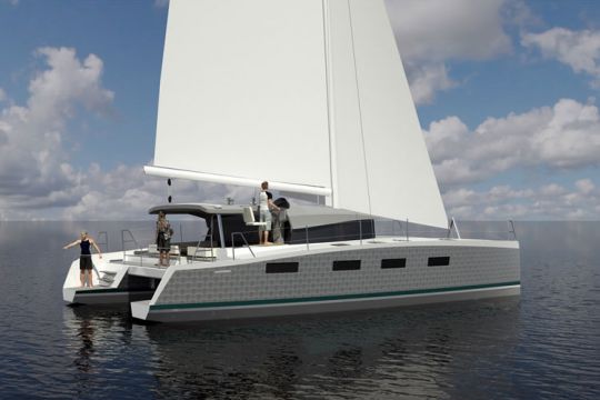 De là est née l'idée de proposer un catamaran de voyage, à l'image de ce que sont les Ovni. Le dessin de ce OvniCat a été confié à Alain Mortain (du cabinet Mortain & Mavrikios à La Rochelle) connu pour avoir dessiné notamment les premiers Nautitech.