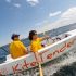 Le kitetender est conçu comme un moyen de rendre le kite accessible au pratiquant qui aurait généralement tendance à choisir le dériveur et la voile classique. Me voilà donc parfaitement dans la cible : je n'ai jamais fait de kite, mais je navigue en voilier. Après avoir enfilé une combinaison, la température de l'eau des pertuis charentais en septembre et la vitesse du kite la rendent nécessaire, nous faisons un rapide point sur le fonctionnement avec Eric Pelaprat de la société Fil d'Air, distributeur du kitetender en France. Il sera mon régleur d'aile pour la sortie. Hormis l'absence de mât, remplacé par une fixation pour l'aile de kite, il n'y a pas de différences majeures, si ce n'est l'absence de bouts et de taquets dans le cockpit.