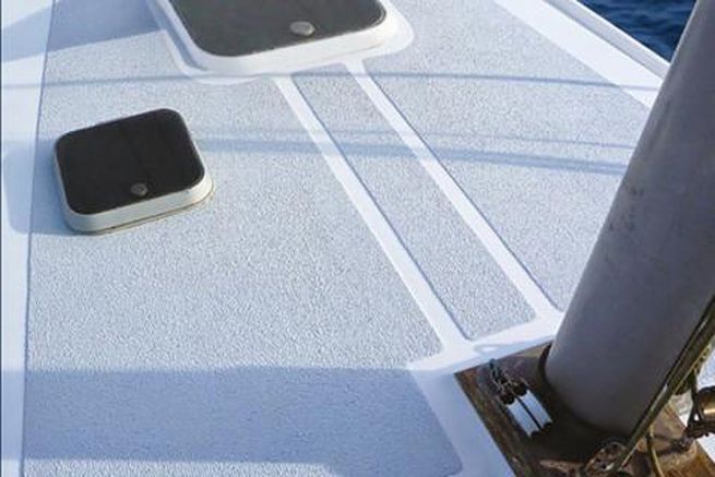 L'application du GripElast se fait avec une spatule crantée ou non. Comptez 0,75 l (un pot) pour 1 m2. On utilise alors un rouleau nid d'abeille (type rouleau à crépir) pour obtenir l'aspect définitif. Avant de se lancer dans la réalisation d'un pont ou d'un cockpit, il est conseillé de faire des tests sur une plaque d'essai. Cela permet de gérer l'épaisseur du produit à appliquer ainsi que la pression à exercer sur le rouleau.