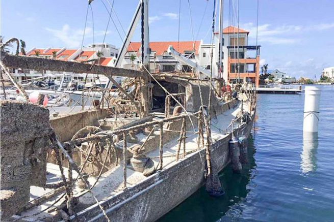 Anthony vient de racheter un voilier coulé à Saint-Martin dans le lagon suite au passage du cyclone Irma. C'est un Sundeer 64, un voilier construit aux États-Unis par le chantier TPI à 10 exemplaires et dont seuls 2 sont grées en ketch.