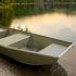 The flat bottom allows the boat to venture into shallow waters for fishing or duck hunting, while offering good stability.