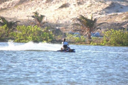 La région du Ceará, et particulièrement la zone comprise entre Fortaleza et Jericoacoara, est devenue l'épicentre mondial du kitesurf. Le vent souffle side shore, parfois légèrement side-on, et offre des conditions de glisse quasi parfaites sur une houle modérée. À Cumbuco, la plage longue et sableuse accueille des écoles telles que Cumbuco Kite Center, Windtown Brazil Cumbuco ou encore Vila Coqueiros Kite School. On y pratique également le windfoil, porté par un vent régulier et de longues lignes d'eau libre sans clapot désordonné.