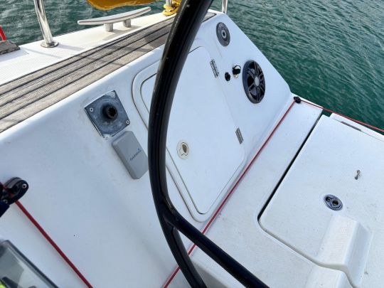 L'ensemble du système est connecté au pilote automatique Reactor, équipé d'un kit spécifique Garmin pour un meilleur pilotage sous voiles. Enfin, le système audio Fusion RA670 complète le confort à bord avec des haut-parleurs dans la cabine et le cockpit.