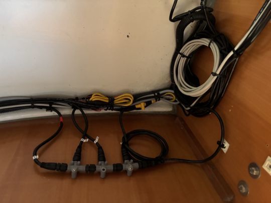 Le montage de ce matériel repose sur l'architecture NMEA 2000, réduisant les besoins en câblage redondant. L'installation des GNX120 au pied de mât a été réalisée sans perçage supplémentaire, utilisant les supports existants. Les TD50 au poste de barre ont juste nécessité un perçage des parois latérales.