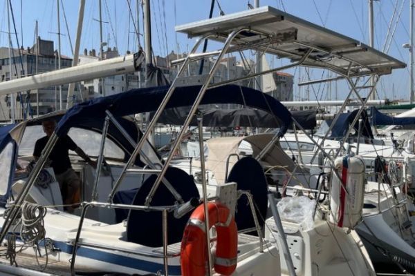 Le déport sur balcon arrière reste la zone la plus exposée au soleil sur un voilier en croisière. Installer des panneaux solaires sur arceau permet de capter un rayonnement constant sans empiéter sur les zones de vie à bord. À la différence d'un bimini, l'arceau inox supporte des équipements lourds et sensibles à la vibration comme une éolienne ou une antenne satellite.
