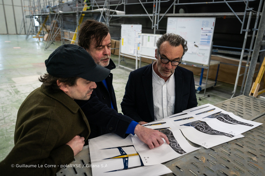 Derrière les portes du chantier CDK à Lorient, le Gitana 18 révèle une collaboration unique entre art et nautisme. Signée par les artistes Florian et Michael Quistrebert et adaptée par Jean-Baptiste Epron, cette décoration transforme le Maxi Edmond de Rothschild en véritable oeuvre mobile sur les mers.