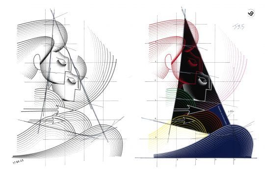 La décoration du Gitana 18 est bien plus qu'une simple livrée. Elle illustre la convergence entre deux mondes de haute technicité : celui de l'art contemporain et celui de la conception navale. Le pointillisme des visages, jouant sur les dégradés de points, s'accorde avec la structure composite du multicoque et sa peau carbone.