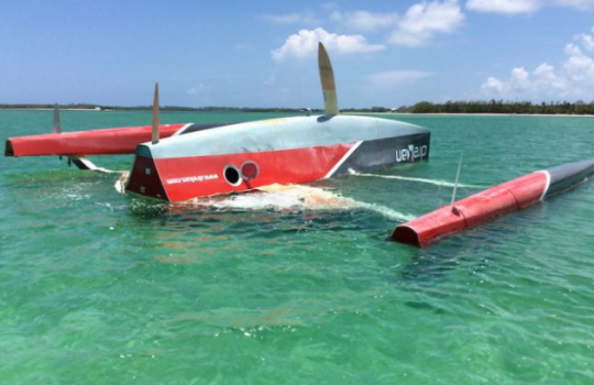 Lors de la Transat Jacques Vabre 2017, Eric Defert et Christopher Pratt chavirent à bord du multi 50 au large du Portugal. Deux années plus tard, l'épave va terminer son périple sur une plage des Bahamas.