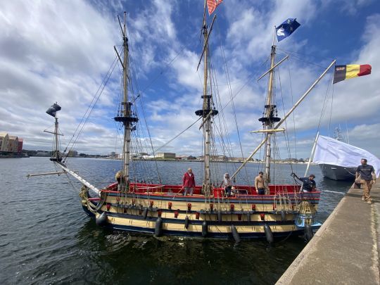 Construite à Bruxelles par des centaines de bénévoles, la réplique du voilier du XVIIe siècle baptisé La Licorne vient d'achever son transfert vers Gravelines, au sein de l'espace Tourville. Cette goélette de 15 mètres inspirée d'un vaisseau d'époque, mais aussi clin d'oeil à l'univers d'Hergé, rejoint le chantier du Jean-Bart pour une aventure commune dédiée à la transmission du patrimoine maritime.