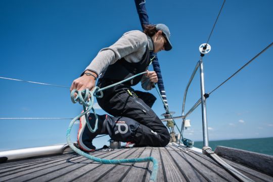 La semelle extérieure est en caoutchouc antiglisse, non marquant, spécialement conçue pour une utilisation sur pont. Elle comporte un dessin limitant la rétention d'eau. La semelle intérieure est conçue à base d'algues BLOOM.