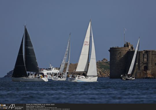 Le mardi 29 juillet, la flotte a quitté le plus haut phare d'Europe, celui de l'île Vierge, pour rallier l'Aber Ildut. Ce parcours côtier a emmené les voiliers jusqu'au phare du Four, cap stratégique à bien négocier avec ses courants forts. ...
