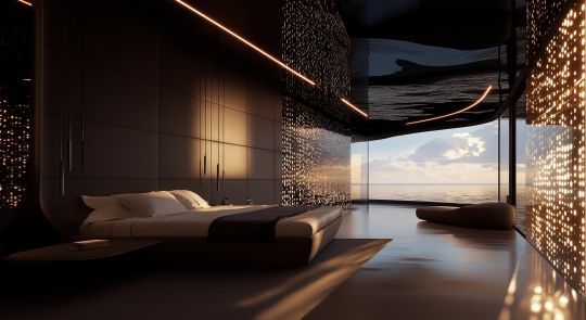 La silhouette massive du Project Monolith se distingue des lignes classiques de la plaisance. Ses formes lisses et noires, dépourvues de superstructures visibles, évoquent davantage une sculpture architecturale qu'un yacht traditionnel. Les terrasses en cascade et les volumes inclinés modifient l'organisation habituelle des ponts. Cette approche questionne la stabilité, la ventilation naturelle et l'intégration des espaces de vie à bord. Les designers entendent créer une expérience de navigation à la fois contemplative et radicalement différente.