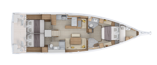 L'Oceanis 52 propose une grande flexibilité d'aménagements avec 3 à 5 cabines, pouvant accueillir jusqu'à 13 personnes (catégorie CE A13). La cabine propriétaire à l'avant bénéficie d'un lit de 160 cm et de nombreux rangements.