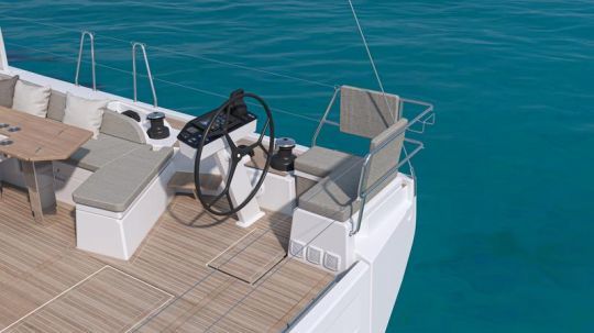 Les manœuvres sont regroupées à l'arrière, avec une séparation nette entre les winches primaires et secondaires. Le plan de pont permet des manœuvres à deux, voire en solitaire, avec une excellente accessibilité au poste de barre. Le cockpit se transforme aisément pour les différents temps de la croisière : navigation, mouillage, repas à bord.