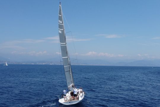 Au près : un vrillage modéré permet un bon cap sans trop solliciter la barre.