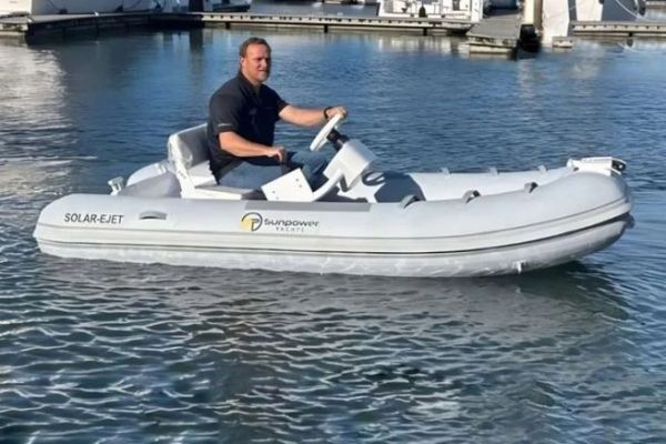 Sunpower Yachts, chantier basé à Antalya, présente une annexe électrique semi-rigide de 3,3 mètres, équipée d'une propulsion jet alimentée par l'énergie solaire du bord. Le modèle, nommé Solar-eJET 3.3, est conçu pour être rechargé directement depuis les panneaux photovoltaïques du yacht, via une connexion intégrée dans la soute à annexe.
