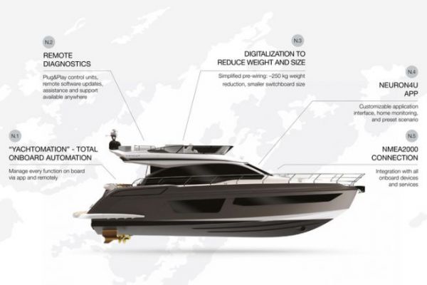 Présenté le 29 août 2025 à Avigliana, « Neuron » se présente comme une plateforme de gestion centralisée. Elle permet de contrôler à distance plusieurs fonctions de bord, depuis une application ou directement via l'écran de pilotage. L'armateur peut ainsi agir sur l'éclairage, la climatisation ou encore les systèmes multimédias.