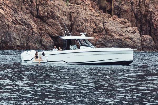 Wellcraft est un nom qui résonne dans l'univers de l'offshore américain. Depuis plusieurs décennies, la marque cultive l'image d'unités robustes, taillées pour les hautes vitesses et capables d'affronter des mers formées. Avec le 38 T-Top, elle transpose cet ADN dans une version modernisée, destinée à séduire une clientèle internationale en quête de bateaux sportifs mais adaptés à un usage mixte. L'idée n'est pas seulement de proposer une machine à vitesse, mais un centre-console qui combine plaisir de conduite, polyvalence et confort à bord.