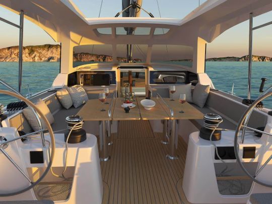 L'innovation majeure de l'Horizon 47 réside dans l'organisation de son pont. Pour la première fois sur un monocoque de grande croisière, les passavants sont de plain-pied avec le cockpit. Ce choix fluidifie les déplacements et réduit les risques de déséquilibre en mer. Seule une marche, placée à l'avant du rouf, marque la transition vers le pont avant.