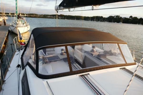 Cette capote sera réalisée sur-mesure suivant les desiderata du plaisancier. Elle a été testé pendant 2 saison sur le voilier de Jean-Yves Chevalier, fondateur de NVequipment. désormais au point, elle sera commercialisée la saison prochaine. Nous avons pu la décvouvrir en avant-première sur le stand du fabricant au Grand Pavois.