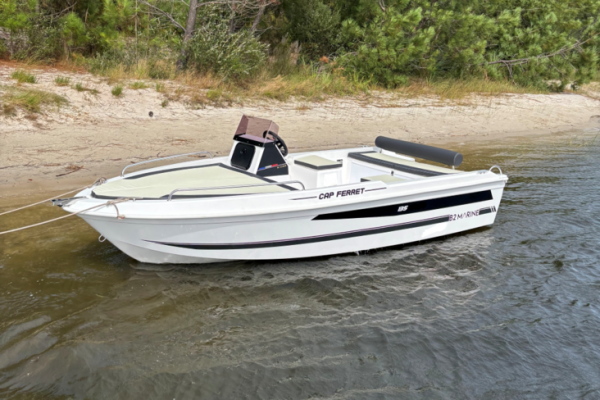 Le Cap Ferret 135 Fishing se présente comme une unité destinée aussi bien aux balades côtières qu'aux parties de pêche. Son bain de soleil avant XXL pour une coque de moins de 5 mètres, intégré au cockpit, permet de profiter du mouillage en toute simplicité, tandis que sa carène compacte et légère promet des navigations réactives et faciles à prendre en main.