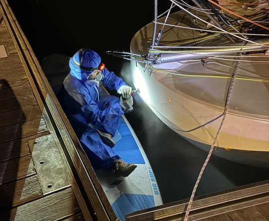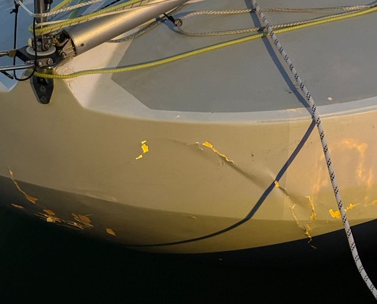 Résultat, un début de course avorté, une étrave très abîmée et un retour forcé au port pour le skipper de Pellipop - PSE : pour un sourire d'enfant. Le coup est dur, car comme pour tous les ministes, ce départ représente le point d'orgue de plusieurs années de travail.