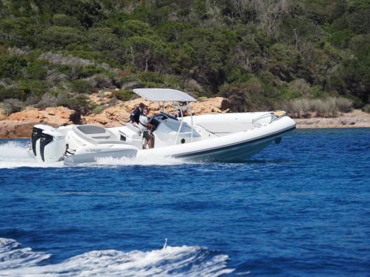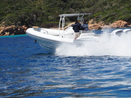 Le rendez-vous est pris au port de Bonifacio pour l'essai du Libecciu 1000. Le vent souffle à une vingtaine de nœuds, soulevant un clapot serré d'environ 60 cm, avec quelques creux de 1 m au large du cap de Pertusato. Des conditions parfaites pour jauger la carène du semi-rigide dans un environnement qu'il connaît bien.