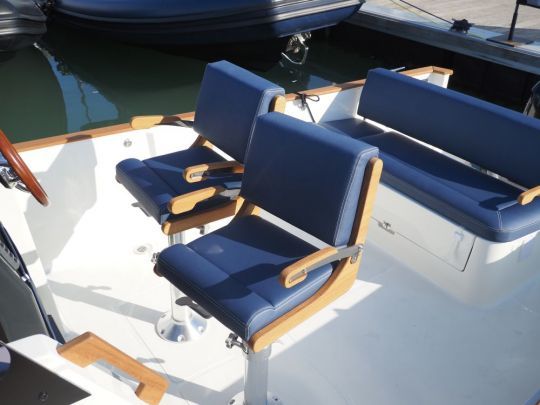 Présenté au Grand Pavois de La Rochelle 2025, le Rhéa 23 Origine signe une nouvelle déclinaison du 23' Open, modèle emblématique du chantier. Derrière son nom, une volonté claire : renouer avec le style et la simplicité des premiers Rhéa. Exit les lignes tendues et les tops encombrants, place à un cockpit dégagé, à des boiseries visibles et à un esprit marin épuré.