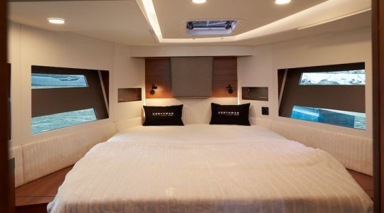 ... une version plus musclée est proposée avec un Yanmar V8 de 370 chevaux. Le chantier a alors modifié le moule de la coque pour adapter les volumes arrière. Une approche technique rarement assumée dans cette gamme. Résultat : le bateau peut dépasser les 23 nœuds en pointe. Mais ce n'est clairement pas sa vocation première.