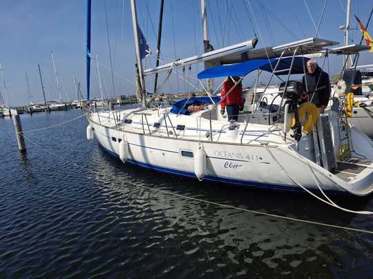 Sur le voilier de croisière de 41 pieds (Oceanis 411), le moteur diesel a été déposé au profit d'un lioteur électrique Bellmarine de 20 kW, alimenté par 20 kWh de batteries lithium. Le gain est net en confort et en silence. Le bateau est utilisé en navigation côtière sur l'IJsselmeer (Hollande), avec hydrogénération possible sous voile et recharge à quai avec le chargeur de 16A.