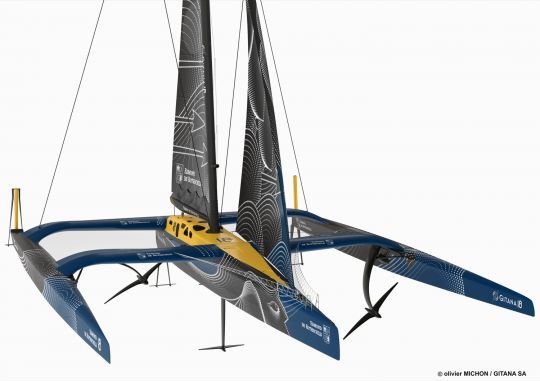 Avec sous les flotteurs, ses foils en Y réglables sur trois axes, Gitana 18 s'inspire directement des AC75 de la Coupe de l'America, mais sur une unité de 32 mètres. Chaque foil possède une aile de plus de 5 mètres d'envergure, permettant une portance accrue tout en adaptant les réglages en fonction des allures et de l'état de la mer. Cette modularité est l'un des éléments clés de la recherche de stabilité à haute vitesse.