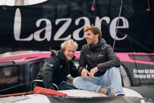 Ce n'était pas leur première transat, mais c'était leur première sur ce bateau. À bord du trimaranOcean FiftyLazare x Hellio, Tanguy Le Turquais et Erwan Le Draoulec forment un équipage inédit. Entre l'expérience d'un finisseur du Vendée Globe et la fraîcheur d'un vainqueur de Mini Transat, le duo semble prêt à avaler les milles de la Transat Café de l'Or 2025.