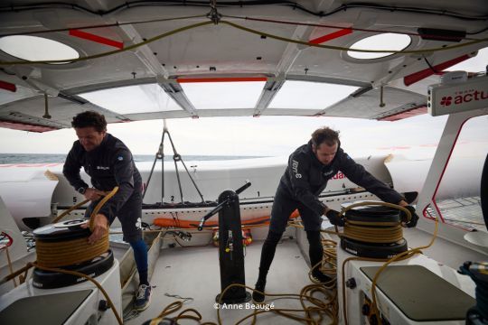 Ils sont à la veille d'une transat, mais l'ambiance reste légère. Sur le quai du Havre, juste après la conférence de presse de la Transat Café l'Or 2025, nous retrouvons Anthony Marchand et Julien Villion, le duo qui prendra le départ sur Actual Ultim 4, l'ex-Gitana 17. L'entretien, mené au format vidéo, prend le contre-pied du sérieux habituel des briefings météo : on parle café, porte-bonheur, souvenirs d'optimist, et même… bonbons Haribo.