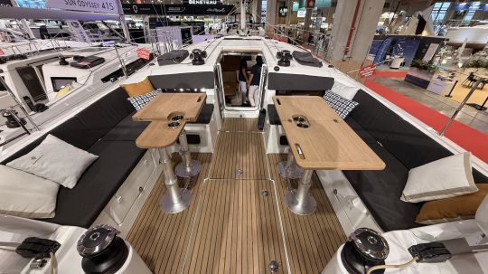 Les boiseries sont sobres, dans l'esprit Jeanneau : ni luxe ostentatoire, ni mobilier standardisé. La sellerie est résistante, les mains courantes sont bien positionnées, et les éclairages indirects apportent un confort discret.