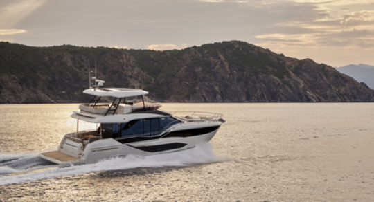 Le Prestige F6.7 s'inscrit dans la continuité d'une gamme entièrement renouvelée, du F4.3 au F5.7. Ce nouveau modèle occupe une place particulière, celle de tête de ligne. Au delà de la silhouette, les partis pris d'aménagement, de circulation et de modularité donnent une lecture claire de l'usage envisagé à bord, en navigation comme au mouillage.