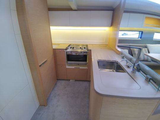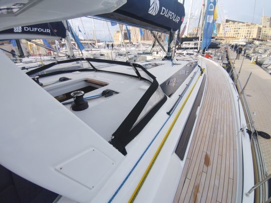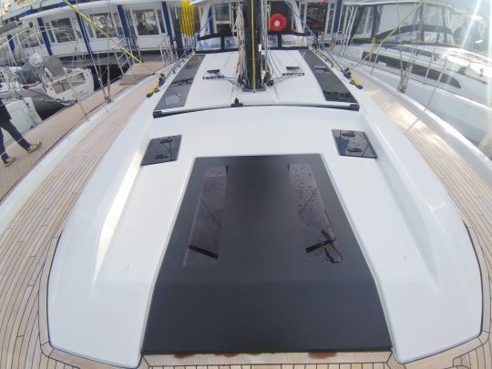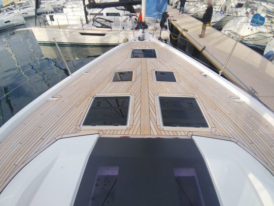 Les passavants larges et dégagés permettent de circuler facilement entre le cockpit et l'avant, sans obstacle marqué. Une marche supplémentaire entre cockpit et pont facilite le passage, ce qui limite les mouvements d'escalade peu appréciés en navigation ou au mouillage.