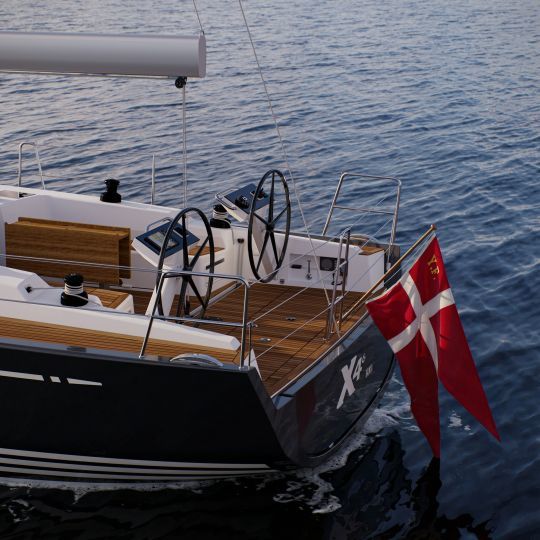 X Yachts a allongé les banquettes de cockpit et revu les dossiers latéraux. L'objectif affiché est d'améliorer le confort, aussi bien en navigation qu'au mouillage. Pour le barreur, les hiloires plus longues apportent un appui supplémentaire, utile sur les allures portantes ou par mer formée.