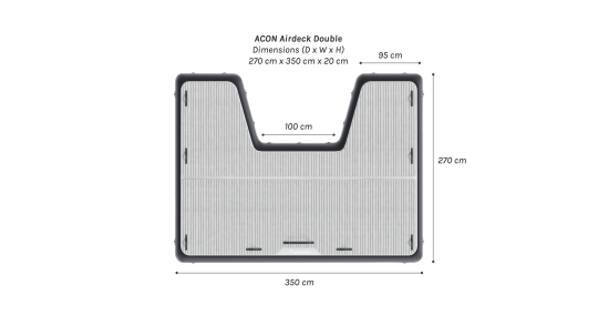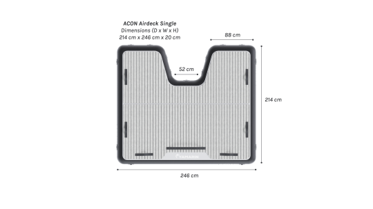 Acon dévoile l'Airdeck, une plateforme gonflable destinée aux bateaux à moteur. Installée sous la plateforme de bain, elle entoure les moteurs hors-bord. L'objectif affiché est d'augmenter la surface utile au mouillage.