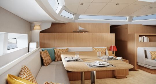 Le cockpit adopte une organisation dégagée, avec des circulations sécurisées entre la descente, les postes de barre et les passavants. Les commandes sont regroupées de manière à limiter les déplacements vers l'avant.