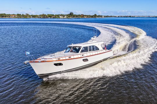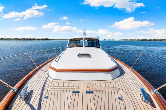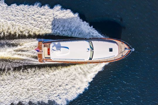 Le 55 Classic appartient à la gamme Custom du chantier, qui s'étend de 46 à 79 pieds, soit de 14 à 24 m. Cela signifie que l'armateur peut ajuster la configuration intérieure, le nombre de cabines ou le choix des matériaux.