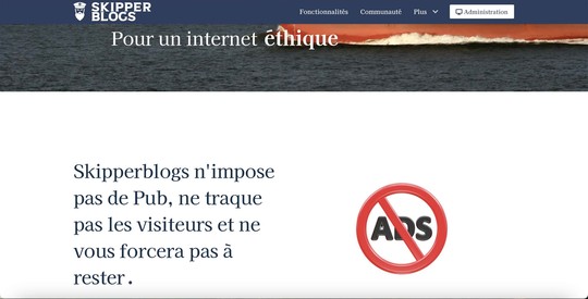 Quelle que soit l'option choisie, utiliser Skipperblogs, c'est aussi s'intégrer dans une communauté et peut-être un état d'esprit. C'est cet état d'esprit que l'on retrouve dans l'éthique de son concepteur. Il n'y a ainsi aucune publicité sur la plateforme, pas d'utilisation de cookies, aucune exploitation de données personnelles et toutes les données sont exportables sur d'autres plateformes. Enfin, vous n'êtes pas seul et pouvez contacter Alain à tout moment pour recevoir une aide personnalisée.