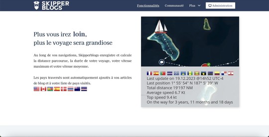 Dès l'origine, Skipperblogs a donc été conçu dans ce but. Et si certains modules et autres widgets apportent des fonctionnalités vraiment très avancées, vous n'en avez pas besoin pour commencer à écrire votre blog et raconter vos aventures. Cela écrit, si vous ne vous sentez pas l'âme d'un reporter ou que vous avez déjà votre propre blog, vous pouvez simplement utiliser la carte et le tracking.