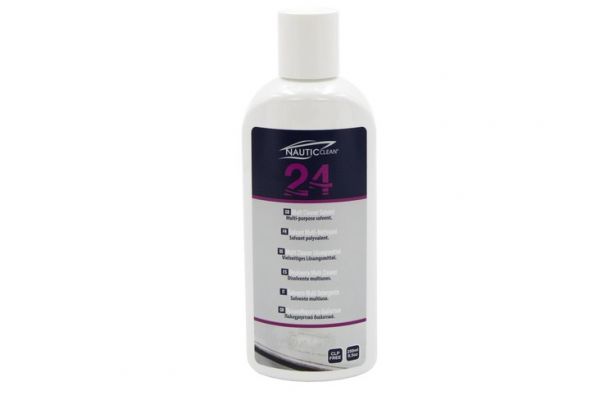 L'entretien des œuvres mortes, du pont ou des superstructures passe souvent par l'élimination de résidus tenaces, laissés par un ancien marquage, des salissures grasses ou un stationnement sous les pins. C'est sur ce créneau que se positionne le 24, un nouveau flacon de 250 ml qui vient compléter la gamme Nautic Clean.