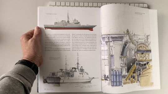 Et puis il y a le trait de Jean-Benoît Héron. Précis, lisible, presque pédagogique. Les silhouettes sont détaillées, les proportions respectées, les équipements identifiables. Ce type d'illustration permet de comprendre rapidement l'architecture d'un bâtiment. Position des superstructures, organisation du pont, volumes.
