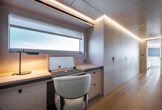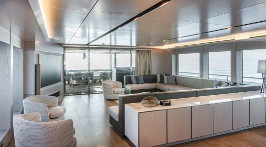 Ce type d'aménagement répond à des usages variés, croisière familiale, télétravail embarqué ou réception d'invités. Et la séparation des flux entre équipage et invités améliore la discrétion à bord.
